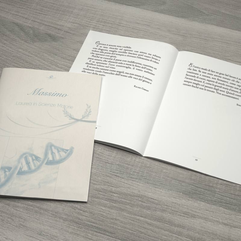 Seleziona l’evento da celebrare, scegli il contenuto che preferisci tra quelli che abbiamo accuratamente scelto e abbina una delle copertine proposte, rivestite in cartoncino morbido con legatura a brossura.